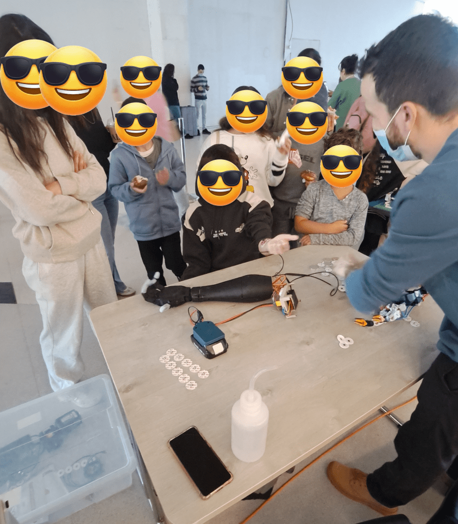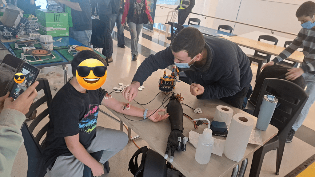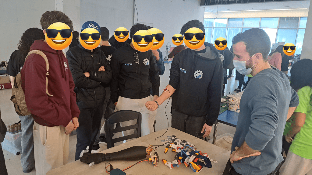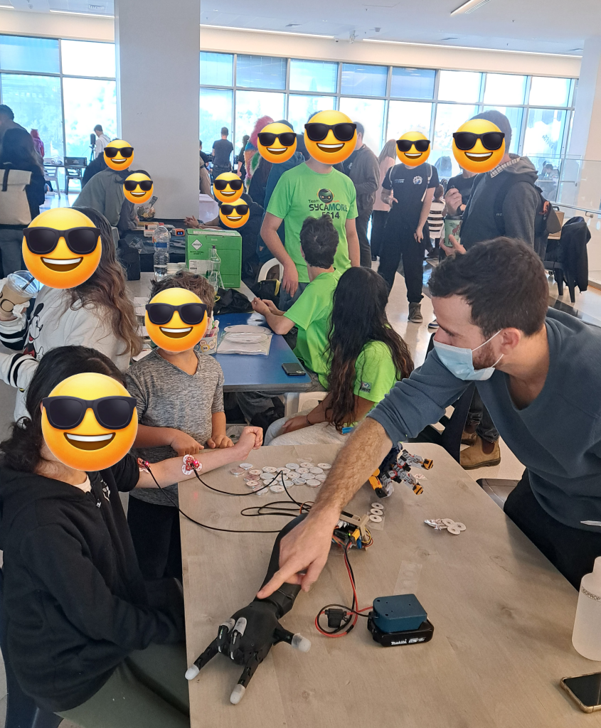 During Hannukah 2025, a number of the eNaBLe Lab’s grad students had the pleasure of participating in the “Education for Healthy Creation” Hannukah fair, held at Schneider Children’s Medical Center. Our team showcased BenBen the robot dog, delighting visitors of all ages, and offered hands-on demonstrations with a simple, 3D-printed myoelectric-controlled bionic hand. The bionic hand was built and programmed by students in Dr. Nili Krausz’s ‘Topics in Bionics and Wearable Robotics’ course.
